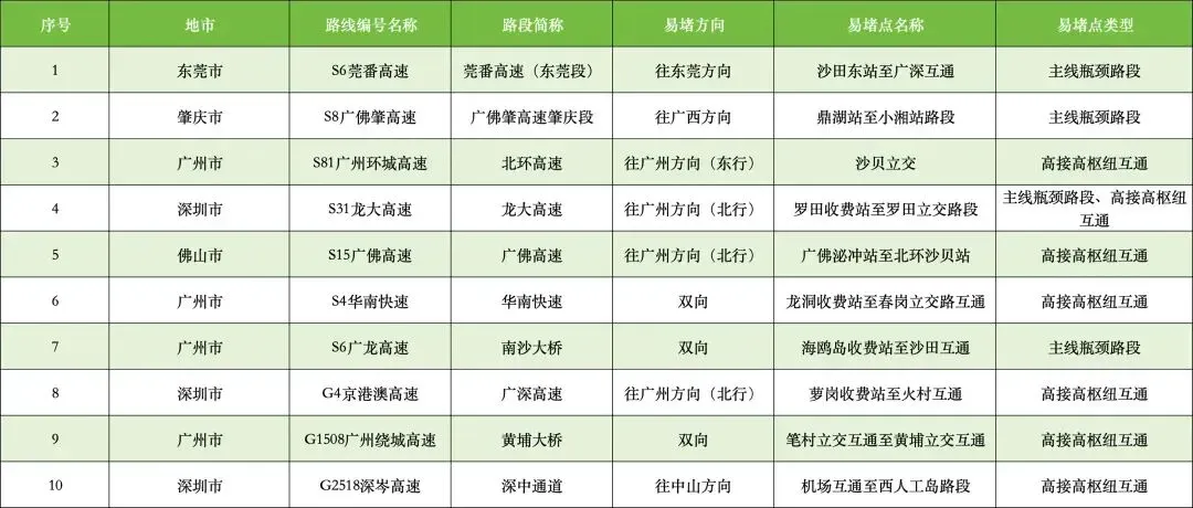 高速公路易拥堵点